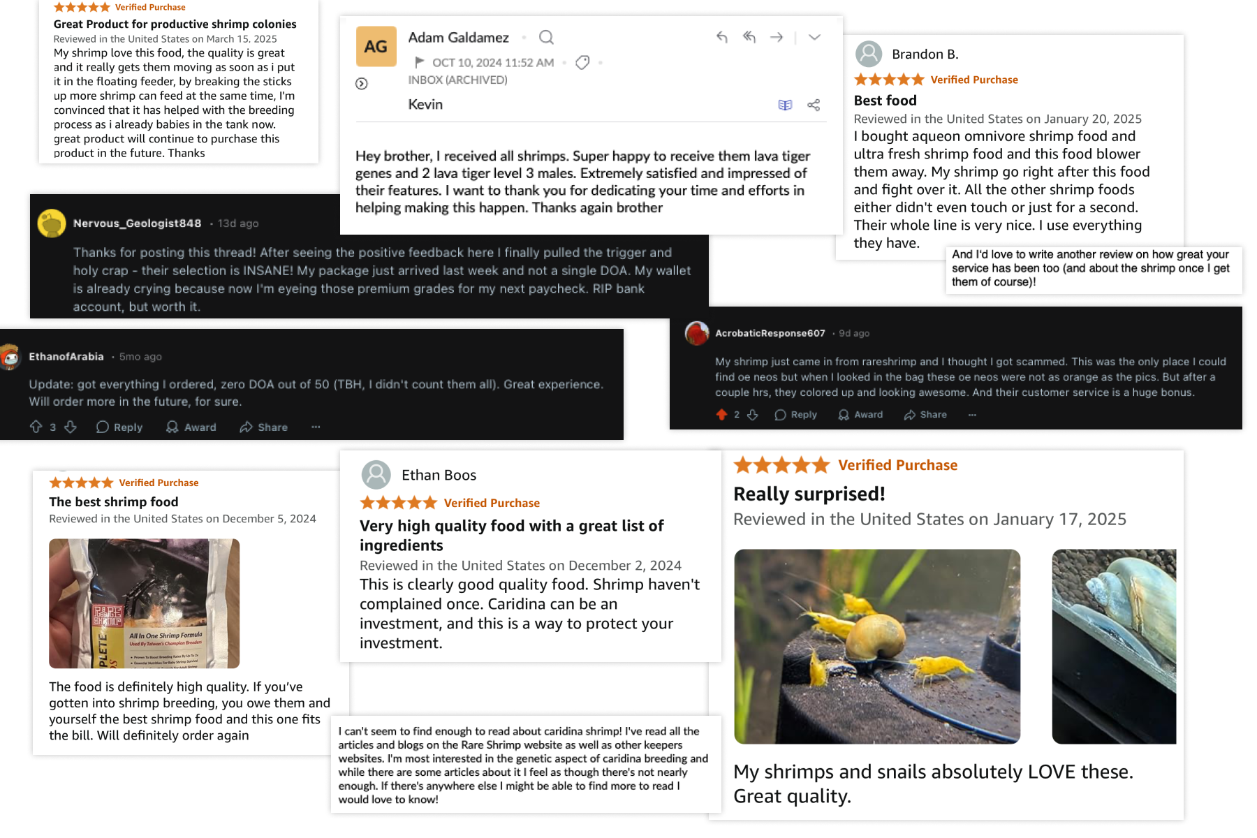 We exclusively partner with award-winning, certified breeders from countries like Taiwan and Germany. We also visit the facilities and ensure the imports are authentic. Each listing includes detailed information about the breeder's credentials and the shrimp's lineage.